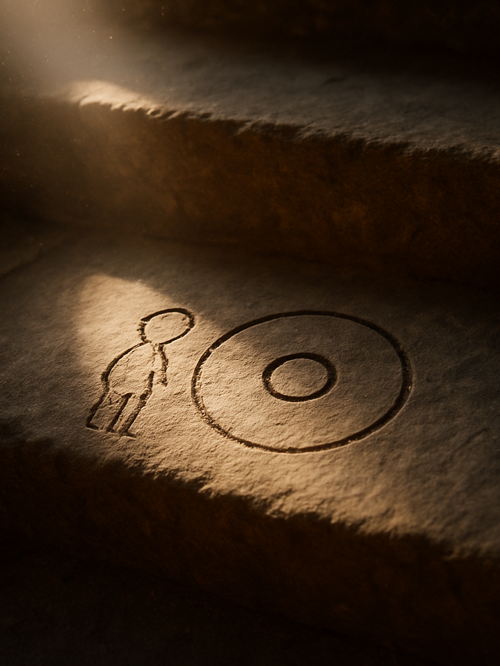 Manche Orte entstehen, ohne gebaut zu werden. Sie zeigen sich in Linien, als Kreis, als feine Markierung im Stein, als Spiegel für einen Raum, der hält und bewahrt.